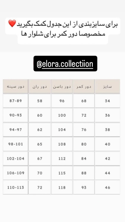 برای اندازهگیری سایز دقیق تون کامل جدول اندازه گیری رو مطالعه کنین اگر ابهامی بود از طریق واتساپ یا پیامک با ما در ارتباط باشین🩷